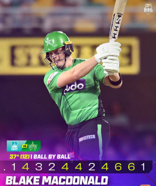 Coming to the crease with the Stars under pressure at 6–139, Macdonald’s explosive hitting transformed the innings. His 58-run partnership with Hilton Cartwright set Brisbane a challenging target and showcased the power and creativity that earned praise from commentary great Adam Gilchrist, who described his batting as “power personified”.