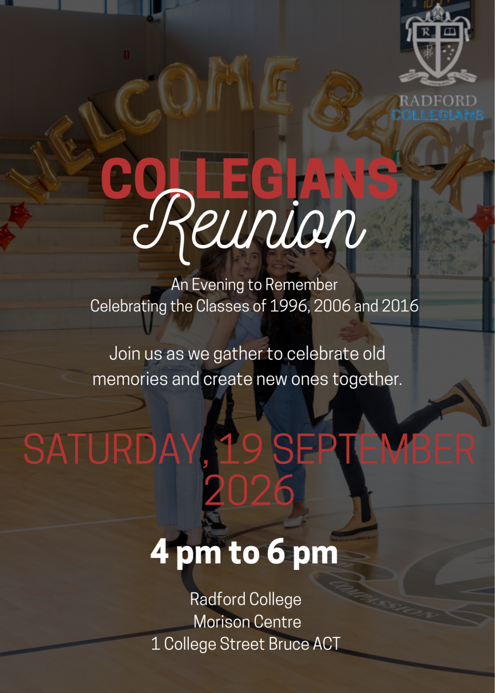 Whether it feels like yesterday or a lifetime ago, this is a special opportunity to reconnect with classmates, reminisce about school days, and see how Radford has grown, while still feeling unmistakably familiar. From friendships forged in classrooms and on ovals, to teachers who shaped your journey, these reunions are a chance to reflect on where it all began and celebrate where life has taken you since.